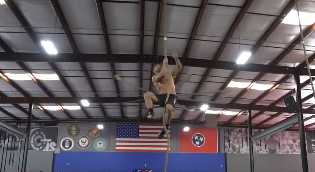 Rich Froning perd un pari et doit faire 25 montées de corde sans les pieds le plus vite possible 23 avril 2020